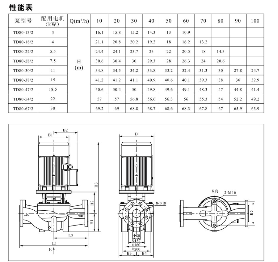 TD80系列單級(jí)管道離心泵,配有標(biāo)準(zhǔn)電 機(jī)和機(jī)械密封。此類產(chǎn)品的結(jié)構(gòu)與相近類型產(chǎn)品相比,更不易受到泵送液體中雜質(zhì)的影響。產(chǎn)品設(shè)計(jì)為頂部可拉出的拆裝形式,其可 以在不影響管路系統(tǒng)的情況下對(duì)泵進(jìn)行維修。所有泵采用創(chuàng)新式便拆式機(jī)械密封,更好機(jī)械密封無(wú)需拆卸電機(jī)。